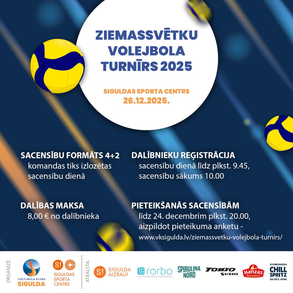 “Ziemassvētku volejbola turnīrs” norisināsies 26.decembrī, Otrajos Ziemassvētkos, Siguldā – Siguldas Sporta centrā.