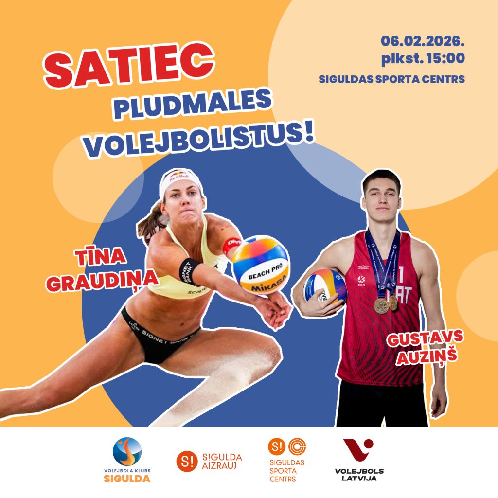 Satiec pludmales volejbola zvaigznes klātienē! Šo piektdien, 6.februārī, plkst. 15.00 Siguldas Sporta centrā viesosies Latvijas izcilie pludmales volejbolisti – Gustavs Auziņš un Tīna Graudiņa!