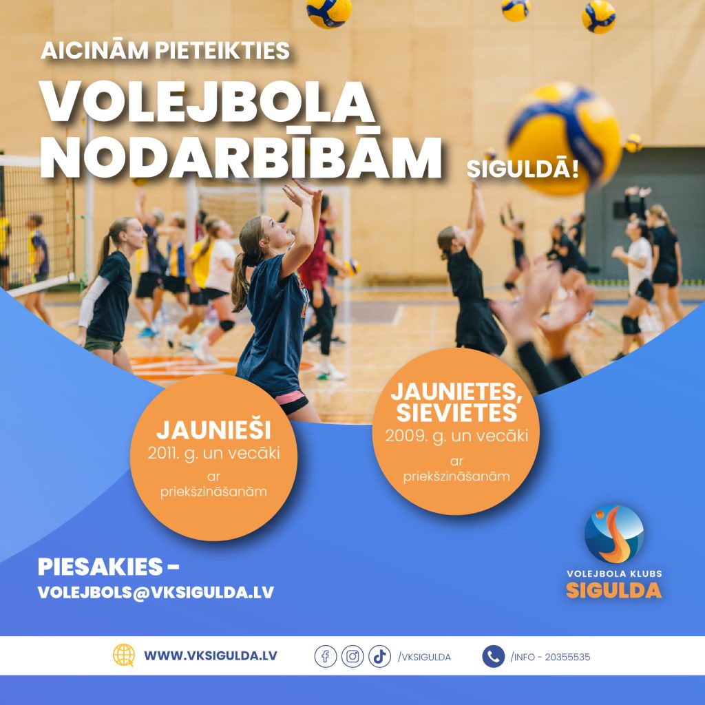 Aicinām pieteikties volejbola treniņiem otrdienās un ceturtdienās Siguldas Sporta centrā.